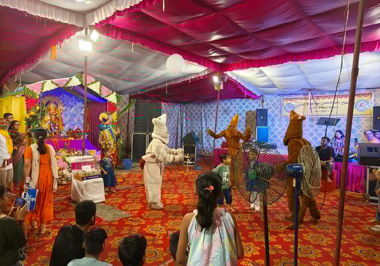 Along with Puja celebrations, SKSS organizes charitable activities, such as distributing food, clothes, school supplies etc. to the needy. This instills a sense of social responsibility and compassion among participants